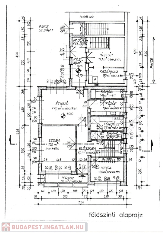 Megvételre kínálok Tura központjában, 1926 nm-es telken, délnyugati fekvésű, tégla falazatú, nettó 154,1 nm, bruttó 442 nm, 7 szobás, kertkapcsolatos, több generációs, hatalmas családi házat, melyet szinte bármilyen célra hasznosítani lehet. A lakható felületet 310 nm-re lehet bővíteni, az egyszintes épület alatt pedig egy remek boros pince húzódik.