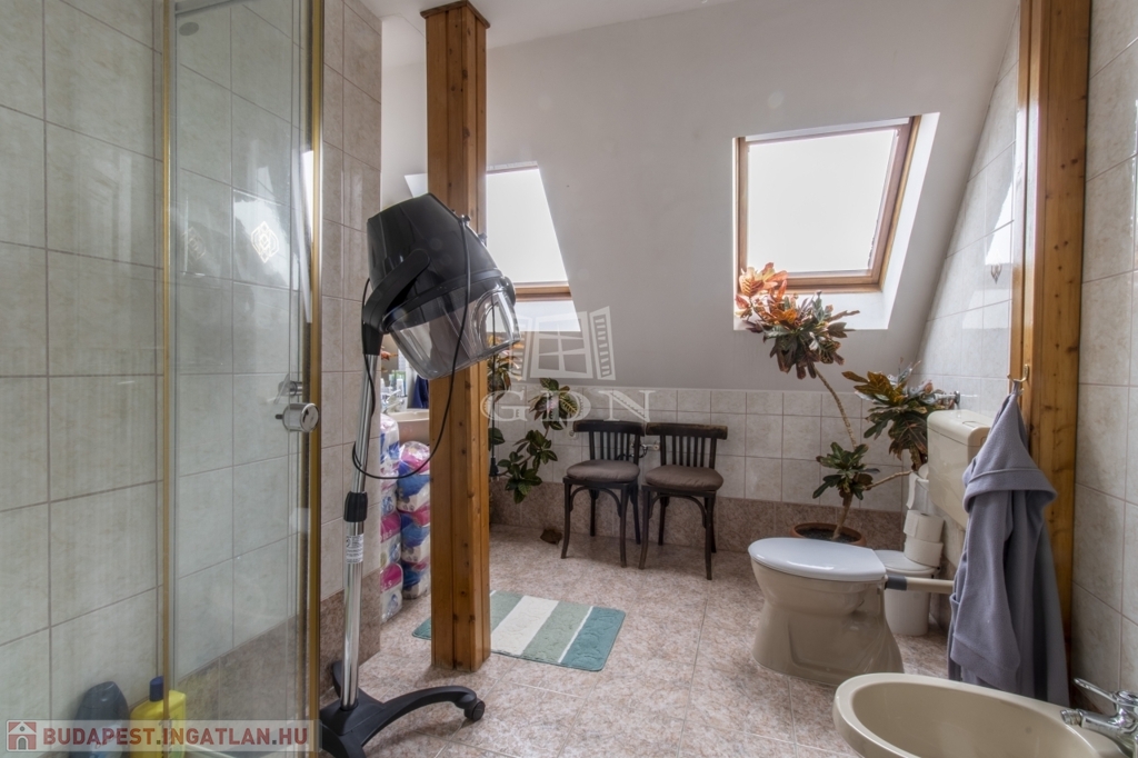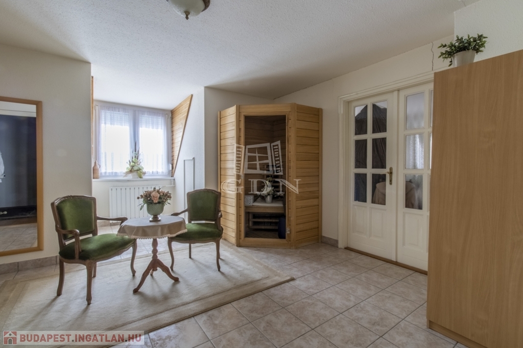 Az épületet gáz és vegyes kazán, 1 db klíma, 5 szoba, amerikai konyha - nappali, 2 füdőszoba, 100 nm-es pince, valamint az emeleten kb. 30 négyzetméternyi rejtett tároló jellemzi, a biztonságért kamera és riasztó rendszer felelős.
