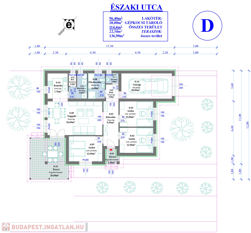- 22,5 nm-es fedett terasz
