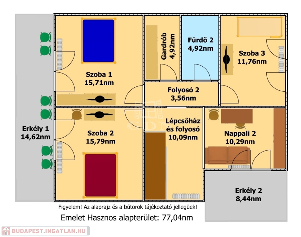 - az emelet hasznos alapterülete: 77,04nm,