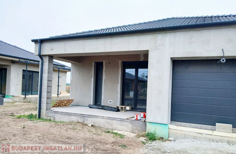 Az ELSŐ házak kedvezményes AKCIÓS ÁRON! Budapesttől 30 percre, Újlengyel Új Lakóparkjában, eladó egy Prémium Minőség Bruttó 188 nm-es, nettó 128 nm-es családi ház 760 nm-es telekkel. Várható kulcs átadás 2026 eleje. A házban egy 40 nm-es tágas, világos nappali–étkező–konyha, 3 hálószoba (az egyiknél közvetlen szülői gardrób) , 2 fürdőszoba, külön wc, kamra, gépészeti helyiség és egy 21 m²-es garázs található. A házhoz két fedett terasz tartozik, köztük egy 37 m²-es, közvetlen kertkapcsolatos, déli fekvésű pihenőtér. Műszaki paraméterek: Porotherm Dryfix téglafalazat, 15 cm EPS homlokzati szigetelés, 30 cm kőzetgyapot födémszigetelés, háromrétegű hőszigetelt nyílászárók, elektromos alumínium redőnyök, levegő–víz hőszivattyús padló és mennyezet hűtés-fűtés, központi hővisszanyerős szellőzőrendszer, elektromos garázskapu, fúrt kút, gondozásmentes kerítés és antracit térkőburkolat. A ház bejárata előtt a járda viacolorból készül el. A lakópark Újlengyel közigazgatási területéhez tartozik, de a településtől kisséelkülönülve helyezkedik el, így biztosítva a nyugodt, csendes környezetet, miközben anapi élethez szükséges alapinfrastruktúra – bölcsőde, óvoda, iskola, kisbolt, gyógyszertárés posta – közvetlenül elérhető a településen belül. Az M5 autópálya újhartyáni lehajtója mindössze 5 percretalálható, így Budapest 20, a belváros 40, Kecskemét szintén 40 perc alatt elérhető.