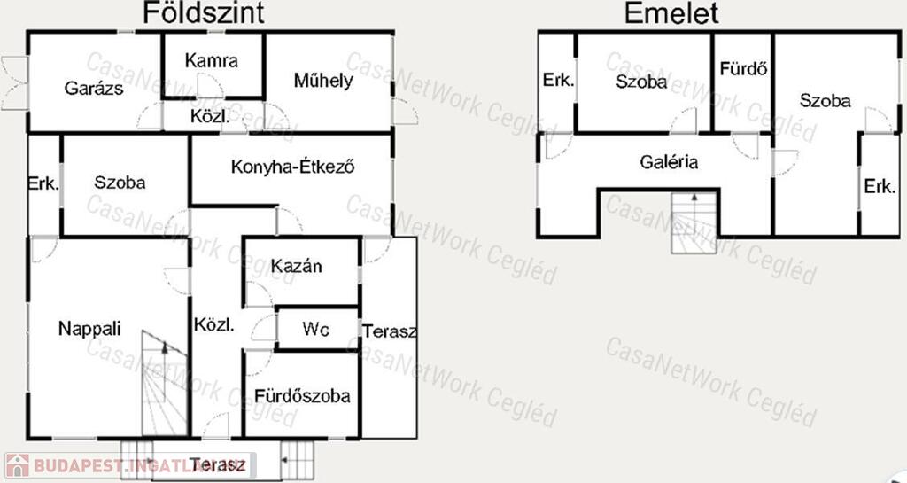- Földszint : 141,12 nm ( nappali vörösmárvány burkolat, szoba, előszoba, kádas fürdő, külön Wc, kazánszoba, étkező, konyha, folyosó, melyek kerámia burkolatúak. A nappali galériás.