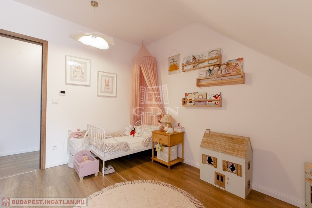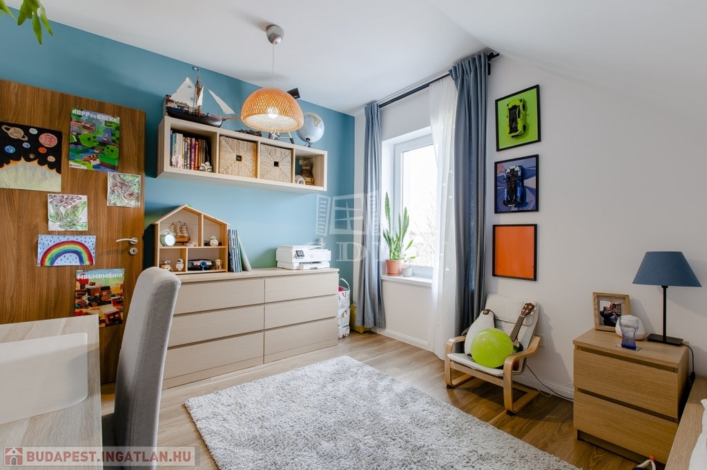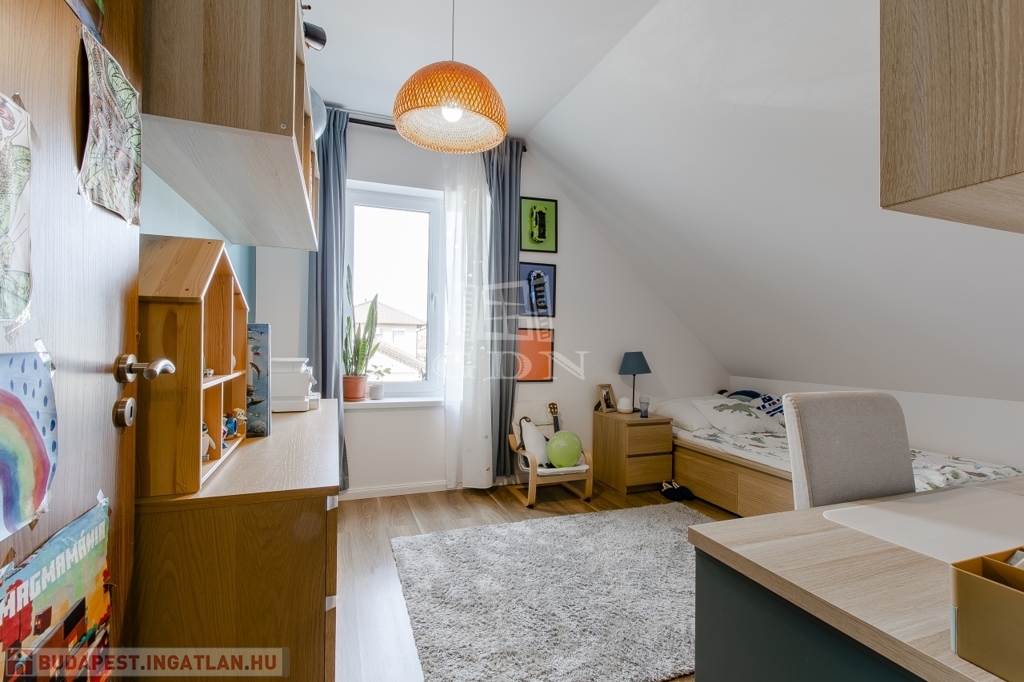 Az emeleten három teljes értékű külön nyíló szoba és egy kádas fürdőszoba lett kialakítva.