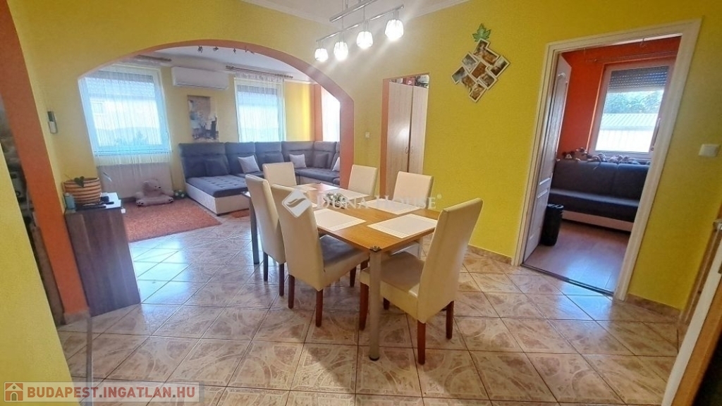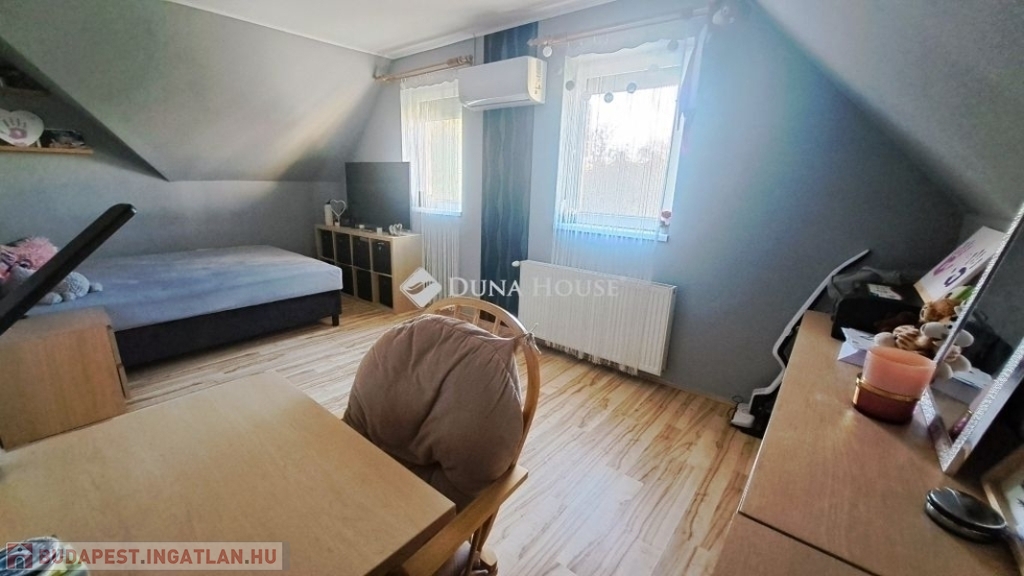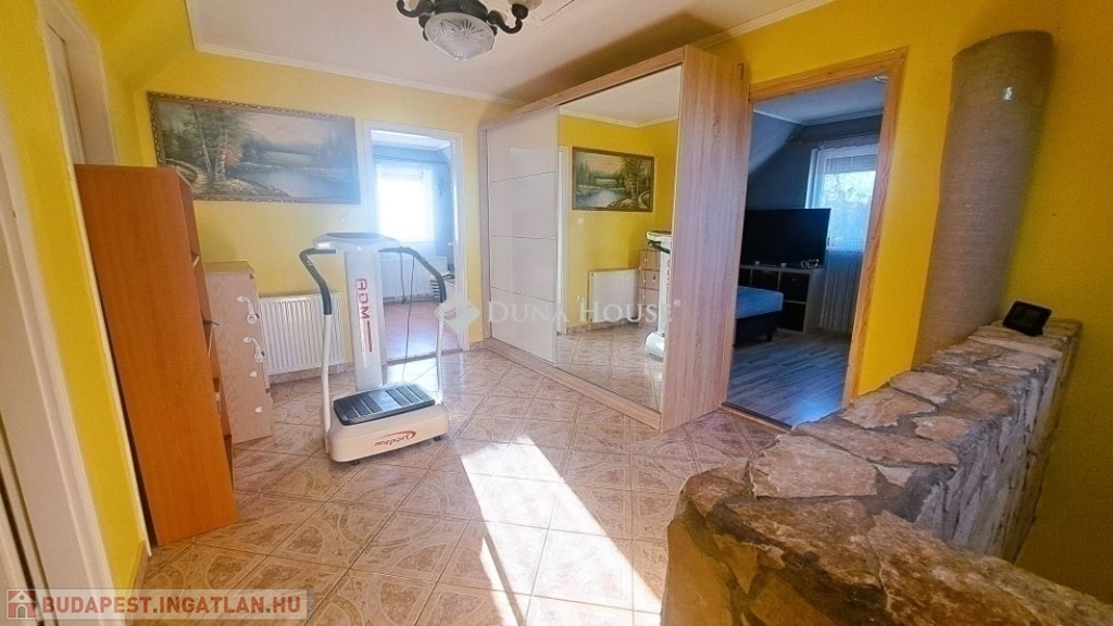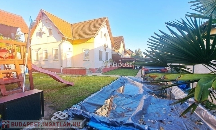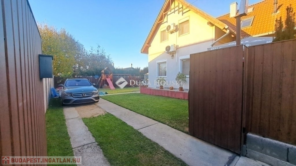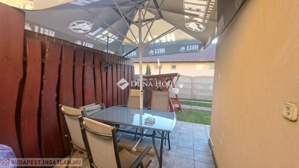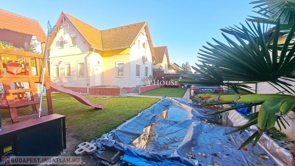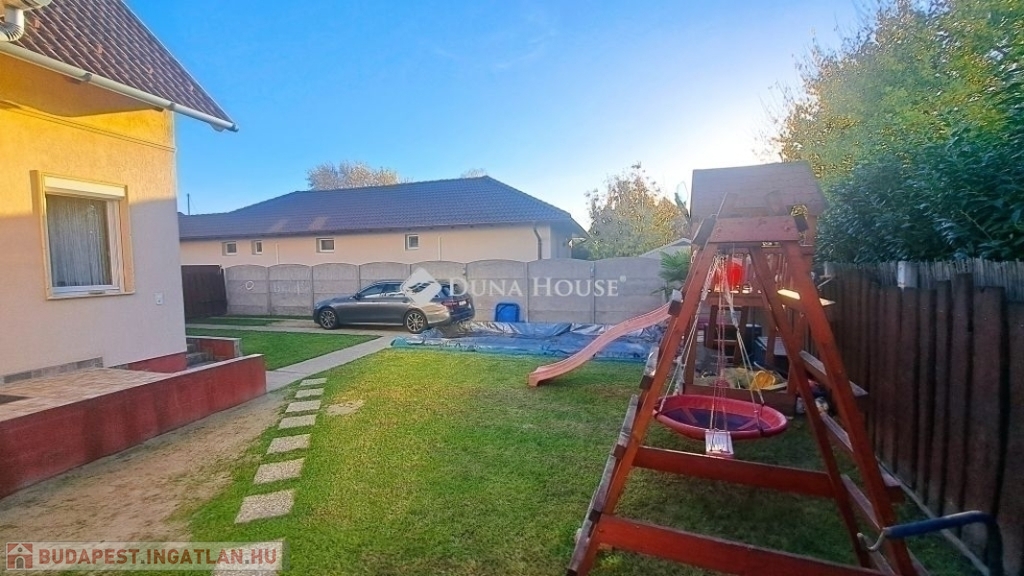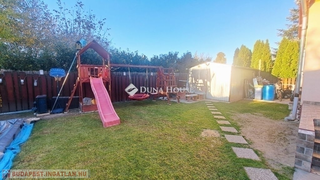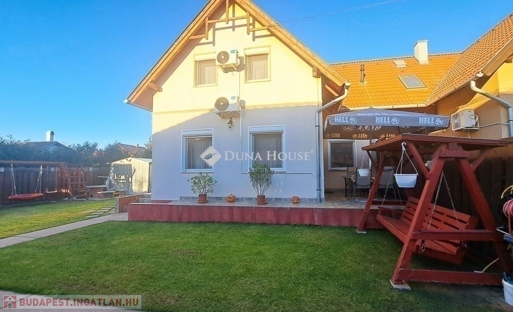 Megvételre kínálok Üllőn egy Nappali+ 4 szobás, Duplakomfortos Ikerházat rendezett szép udvarral és Medencével, csendes környékenAz ingatlan főbb jellemzői: - Építés éve: 2007- Szerkezete: Tégla- Szigetelés: 10 cm- Hasznos alapterület: 122 nm + 18 nm terasz + - Telek mérete: 470 nm , Összközműves, szorgalmi útról megközelíthető- Fűtése: Turbo Gázkazán, Padlófűtés mindenhol, a szobákban pedig radiátorok vannak.- Földszinten (Nappaliban) 5 kw-os Hűtő-fűtő klíma- Emeleten ( 3 db szobánként 1 db) 3,5 kw-os Hűtő-fűtő klíma- Műanyag nyílászárók szúnyoghálóval és redőnnyelElrendezése: - Földszint: Nappali, Szoba, Előszoba, Étkező, Konyha, Fürdőszoba, Wc, Kamra, Terasz - Emelet: 3 db Szoba, Fürdőszoba+ Wc, KözlekedőA ház elhelyezkedése és kialakítása kiválóan alkalmas nagycsaládosok számára is.Jól átgondolt és kivitelezett, tágas életterek állnak rendelkezésre, szintenként 1-1 Fürdőszobával és illemhelységgel.Elektromos kapun jutunk be az udvarra, ami applikáción keresztül és távirányítóval is vezérelhető, nyitható.Az udvaron található:- 7mx3,5m-es gépesített medence, amely 1,5 m mély, 9 kw-os hűtő-fűtő hőszivattyúval biztosítja a kellemes hőmérsékletet, a hangulatot pedig led világítás biztosítja- játszótér- sütügető- 3x5 méteres mobilgarázsA vételár részét képezi:- mobilgarázs- az emeleten lévő gardróbszekrény a közlekedőben- az emeleti szobában található fél éve vásárolt franciaágy Ez az ingatlan valóban különleges és tökéletes választás mindazok számára, Akik jól átgondolt és felszerelt, tágas, világos tereket keresnek.Amennyiben az ingatlan felkeltette az érdeklődését keressen bizalommal a hét bármely napján.Jöjjön el, nézzük meg együtt.