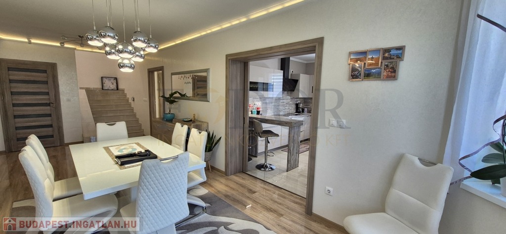 Üllő gyönyörű Dóra Liget-lakóparkjában most eladó egy varázslatos, mediterrán stílusú otthon, amely nem csupán ház – ez egy élettér, amelyben minden nap egy új kaland kezdődik. Ez a 320 m²-es, kétszintes otthon a gondos tervezés és a minőség tökéletes harmóniájával épült 2019-ben. Porotherm téglából készült, 10 cm-es hőszigeteléssel és Bramach cseréptetővel. Az ingatlan hőérzete egész évben ideális: a 16 kW-os hőszivattyú, a mennyezet-, fal hűtés-fűtés és padlófűtés külön termosztátokkal szobánként garantálja a maximális kényelmet. A lépcsőházban található 5 kW-os inverteres klíma (Fischer) még inkább fokozza a kényelmet. Ráadásul a kiépített 20 kW-s napelem rendszer (Szaldós) nemcsak nyáron biztosítja a hűtést, hanem télen a fűtés költségeit is jelentősen csökkenti!