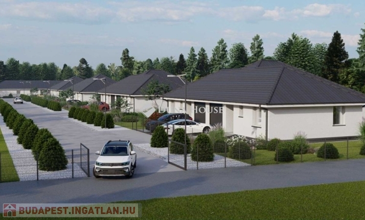 Kialakítása: 2 szoba, nappali, konyha, fürdő, külön wc, előtér, terasz, garázs 18 m2