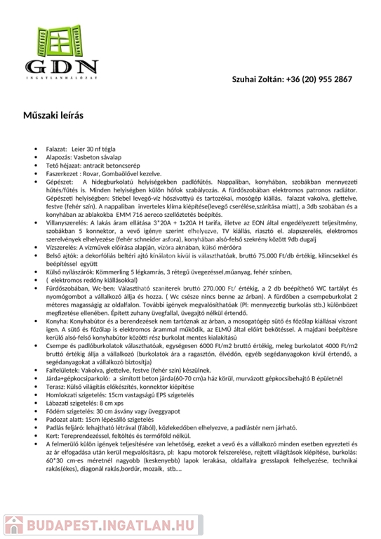 • Gépészet: A hidegburkolatú helyiségekben padlófűtés, a nappaliban, konyhában, szobákban mennyezeti hűtés/fűtés is. Minden helyiség külön termosztátról szabályozható.
