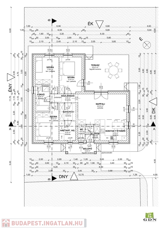 Az elegáns belső terekben a nappaliból és az egyik hálóból nyílik a tágas, 25m2-es TERRASZ, ahol kiválóan lehet pihenni.