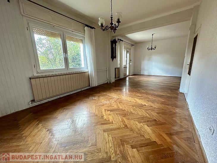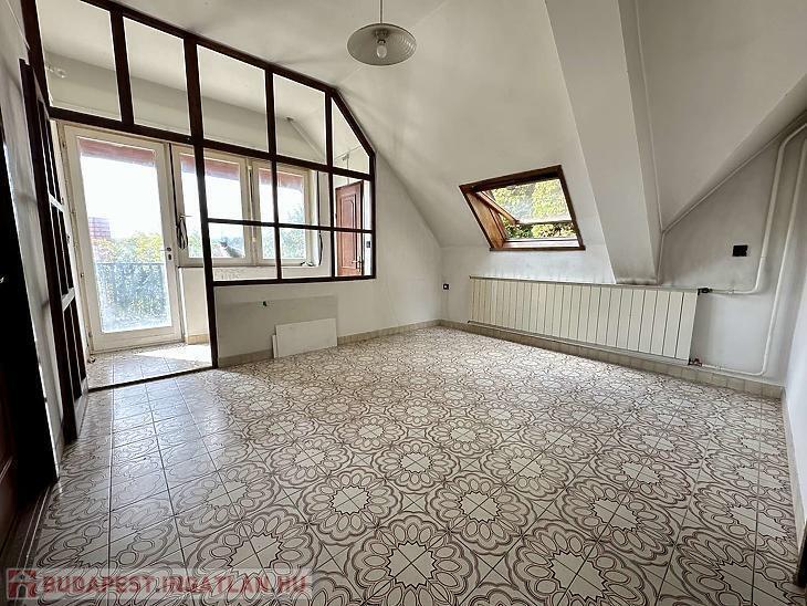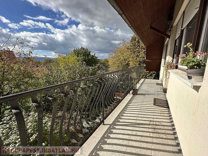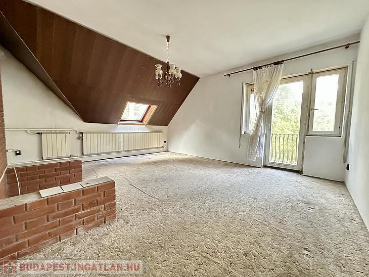 A felső szint szintén külön bejárattal rendelkezik, elosztása: előszoba, nappali, három hálószoba, konyha, fürdőszoba, külön WC, valamint egy erkély. Itt dupla üvegezésű fatokos ablakok találhatók.