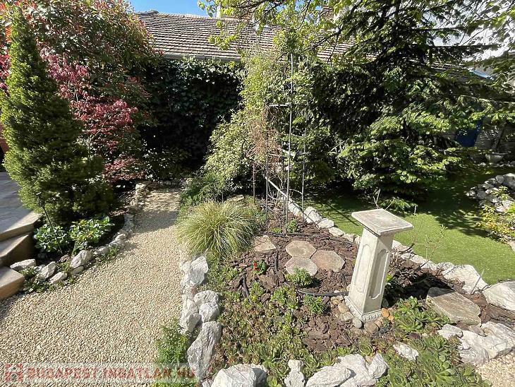 A házhoz tartozik egy kb. 100 nm-es, gondozott kert öntözőrendszerrel, egy 14nm-es garázs, illetve extraként egy infra szauna. A földszinten egy 20 nm-es terasz, a második emeleten egy 7 nm-es erkély, míg a harmadik szinten egy 9 nm-es panorámás terasz biztosít kellemes kikapcsolódási lehetőséget és szép kilátást.