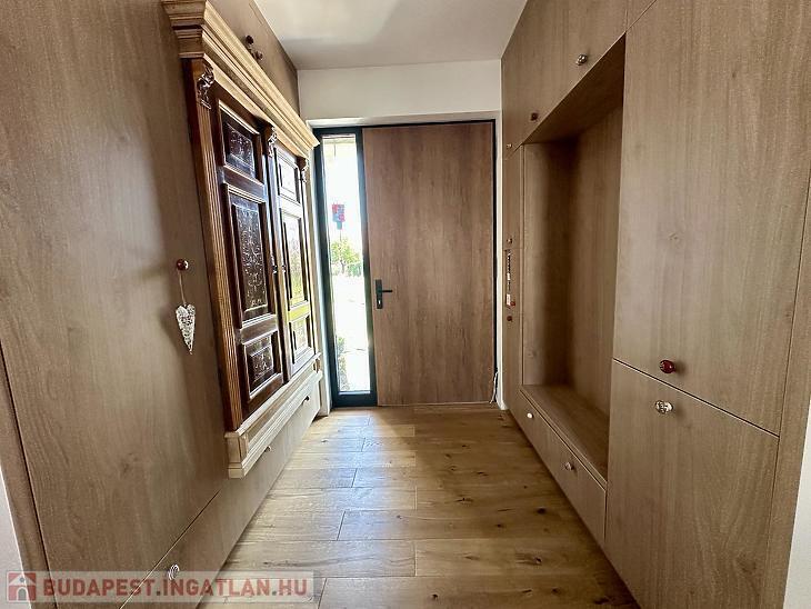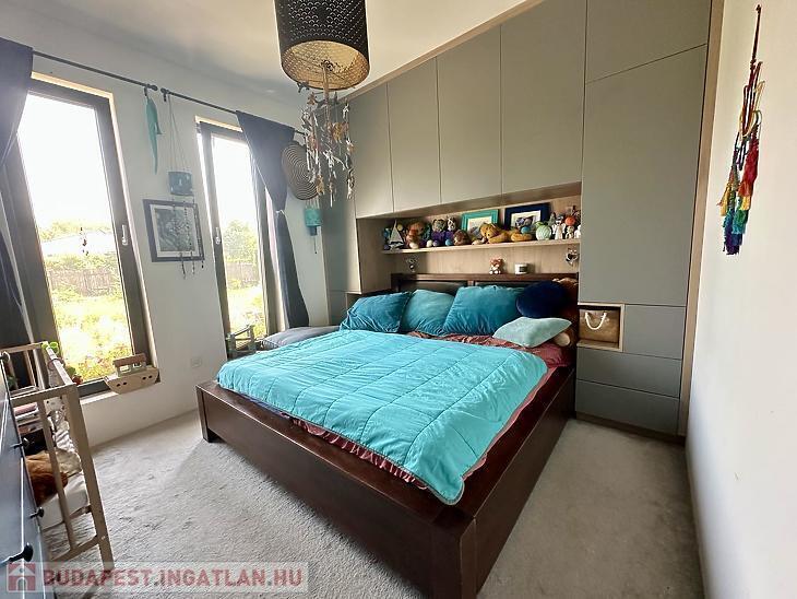 Eladó Vác Déli lakóparkjában egy 93 nm-es, modern technológiával épült családi ház, amelyhez tartozik egy 63 nm-es garázs szerelőaknával – ideális választás lehet mindazok számára, akik tágas otthont keresnek nyugodt környezetben, ugyanakkor értékelik a praktikus megoldásokat is. A ház OSB SIP panelből készült, 15 cm-es kőzetgyapot szigeteléssel, ami kiváló hőszigetelést és energiatakarékos működést biztosít. A fűtésről villanykazán gondoskodik padlófűtéssel, a nyílászárók pedig tripla üvegezésű thermo műanyag ablakok, melyek tovább növelik a komfortérzetet.