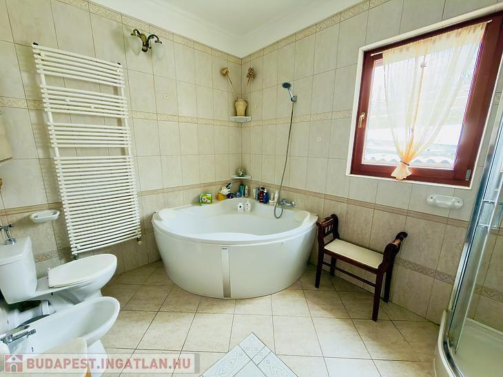 Az ingatlan dupla üvegezésű fa nyílászárókkal, tágas, napfényes terekkel rendelkezik. Fűtése gázkazánnal és padlófűtéssel megoldott, az ICF falazatnak és a 7 cm-es szigetelésnek köszönhetően a rezsi rendkívül alacsony. A kertben egy különálló kisház is található, amely ideális hobbihelyiségnek vagy műhelynek, valamint egy háromállásos fedett autóbeálló is rendelkezésre áll.