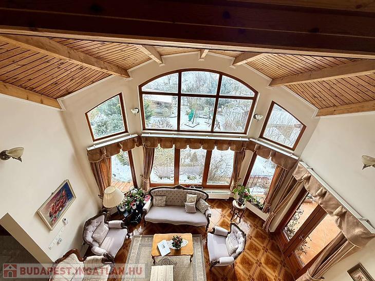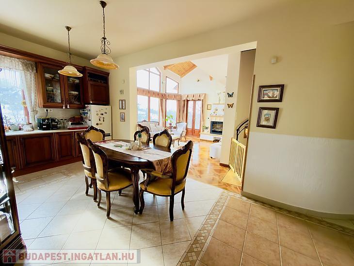 A 350 nm-es, világos és jól átgondolt elosztású családi ház több szinten biztosít kényelmes életteret. A földszinten két szoba, tágas nappali, konyha, étkező, fürdőszoba, tároló és gépészeti helyiség található, valamint pince és egy kétállásos garázs. Az emeleten előszoba, három hálószoba, amerikai konyhás nappali, amelyből nyílik a panorámás terasz, valamint fürdőszoba és külön WC kapott helyet, míg a tetőtérben egy további szoba került kialakításra.