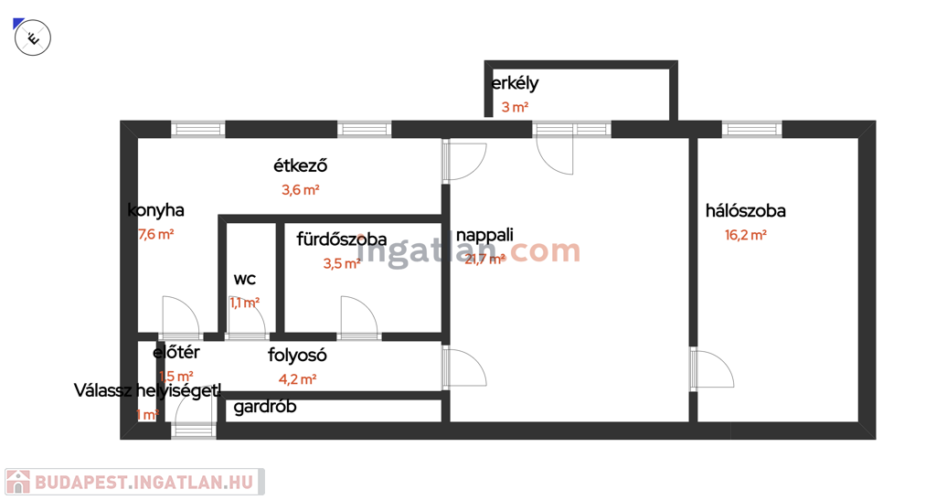 A lakás erkéllyel rendelkezik, amely egy csendes, belső udvarra néz, így ideális nyugodt otthonra vágyóknak.