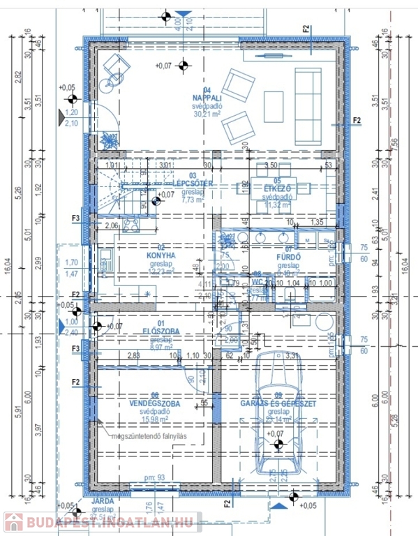 Övezeti besorolás: Lke-1, beépíthetőség: 30 %