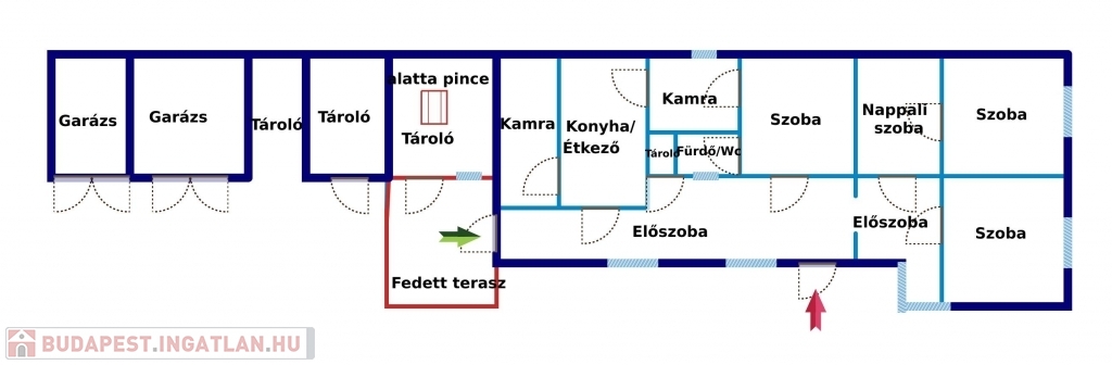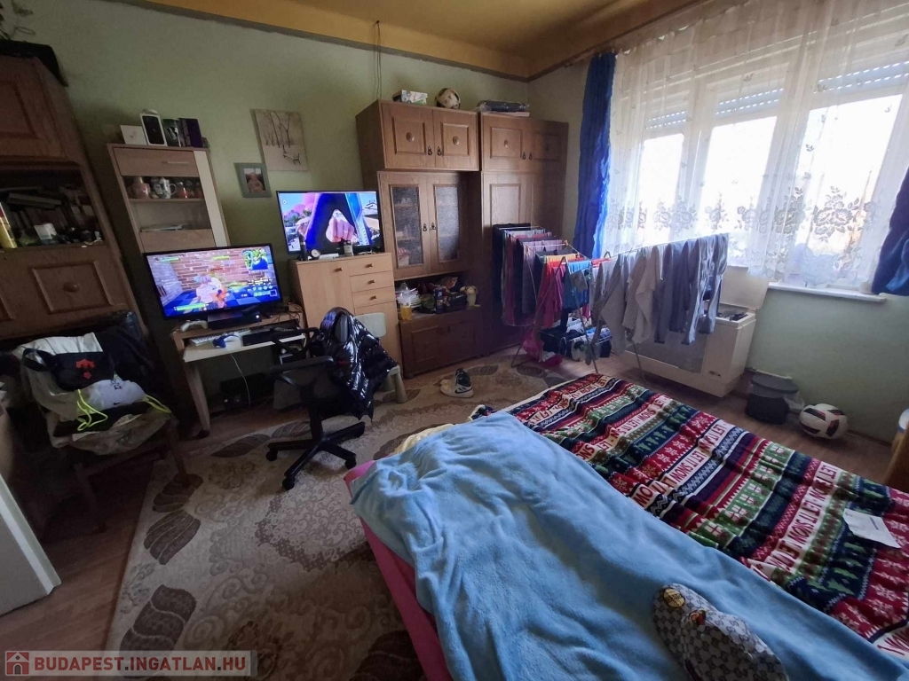 Gödöllő és Veresegyház szomszédságában VÁCEGRESEN a központban eladó 4 nagy szobás családi ház (127 m2) melléképülettel (30 m2) és 2 db garázzsal (30 m2). Az ingatlan lakható állapotú - de felújítás szükséges! Összközműves, az otthon melegét gázkonvektoros fűtés adja és 1 kandalló is beszerelésre került. 2007-ben a vízvezetékek cseréje megtörtént valamint a központi csatornára való csatlakozás 2015-ben vált valóra. Nappali 3x16 amper és éjszakai 3x16 amper is be lett kötve. Melegvizet villanybojler adja. Az épületbe 2 bejárat is ki lett alakítva. Az első a szobák előtt, a második bejárat pedig a konyha előtt. A főbejárat a fedett teraszon keresztül vezet egy tágas előszobába. Innen balra nyílik a konyha étkező, melyből egy nagyobb kamra/tároló lett kialakítva. Jobbra is található egy másik nagy kamra, mely akár még szobává is alakítható. A folyosón tovább haladva balra a konyha mellett egy kisebb tároló található, ahol a padlásfeljárót is találjuk, mellette pedig a fürdő/mosdó helyiség lett kialakítva. Tovább haladva az egyik hálószoba található balra, majd mellette egy nappali szoba, melyből az egyik utcafronti nagy szoba nyílik. Mellette külön bejárattal a másik nagy szoba található.