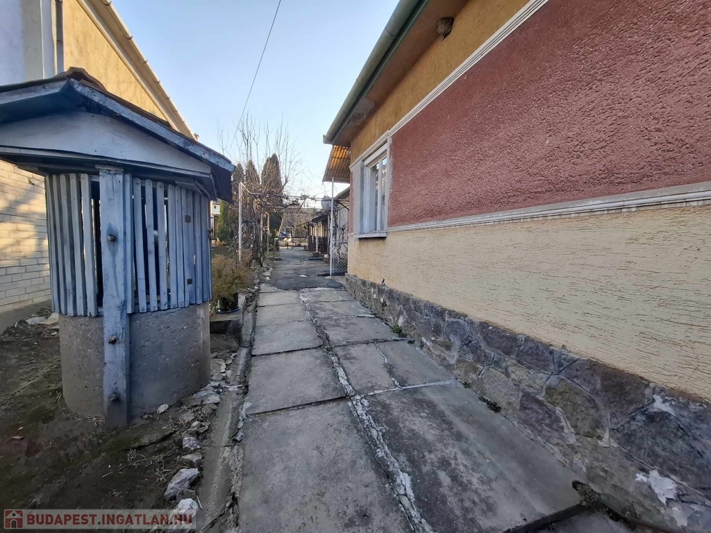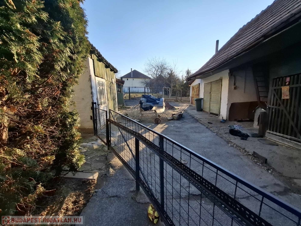 A telek kerítéssel körbe kerített (1222 m2-es). Kertjében fúrt kutat is találunk és a főépület folytatásában 3 db tárolót - az egyik alatt pincét, valamint 2 db garázst, melyből az egyik alatt szerelőakna is található!