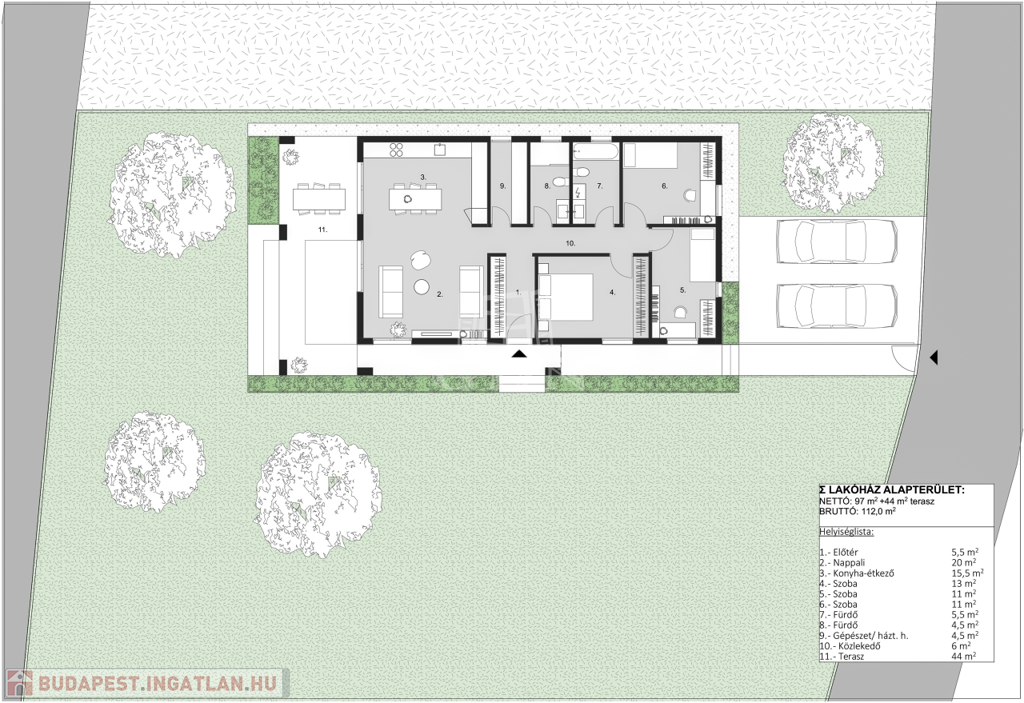 Az ingatlanhoz tartozik egy 984 négyzetméteres, gondozott kert, amely tökéletes helyszín kikapcsolódáshoz.
