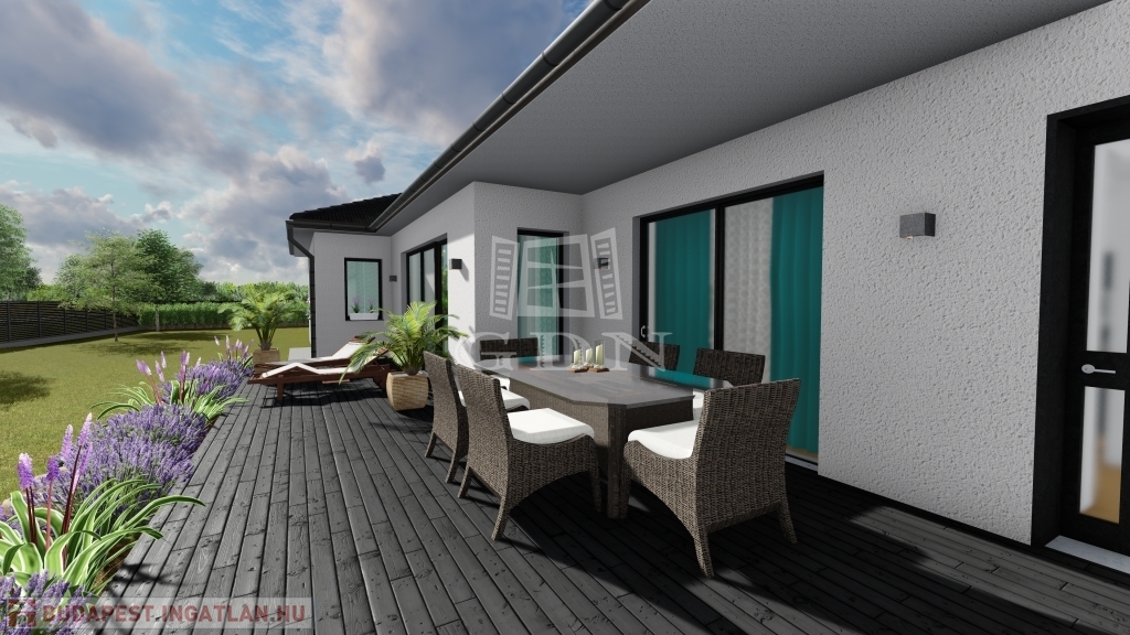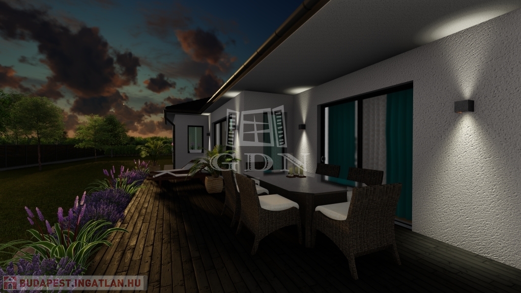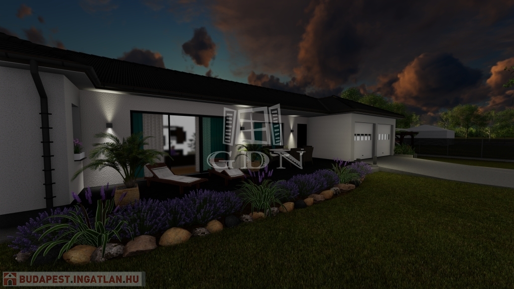 Jelen tervek szerint lakás alapterülete 151,33 m2 + 36 m2-es garázs + 43 m2-es terasz.