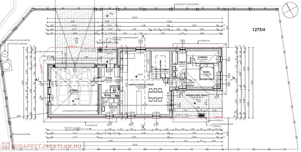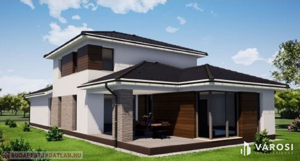 Az ingatlan egy 642m2 alapterületű saroktelken épül, garázzsal együtt két szinten összesen ~180nm alapterülettel.