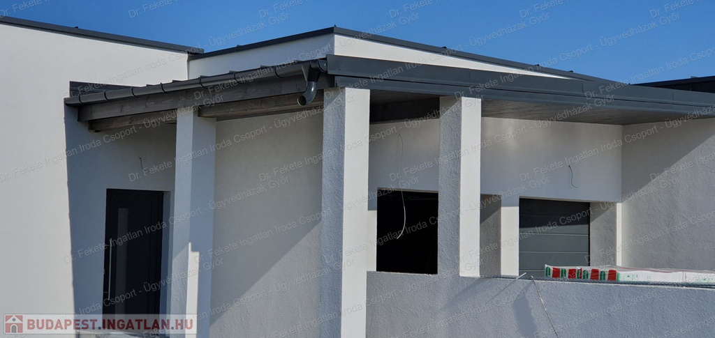 A tetőfedése: korcolt bádog - félig lapostető (cca.5%-os)