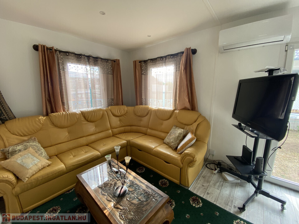 Monortól néhány km-re, Vasadon, belterületen, lakóházas övezetben eladó egy azonnal költözhető, szigetelt, klimatizált, könnyűszerkezetes mobilház 600 m2 telekkel.