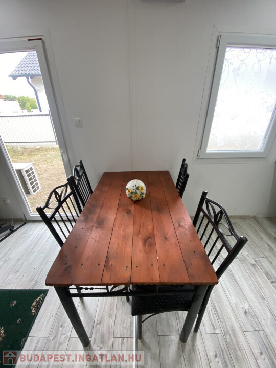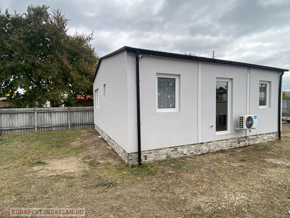 Az épület teljesen újszerű állapotú, 2 szoba + nappali, konyha-étkező, fürdőszoba található benne, víz, villany közművekkel felszerelt, zárt tartályos emésztővel, fúrt kúttal a kertben.