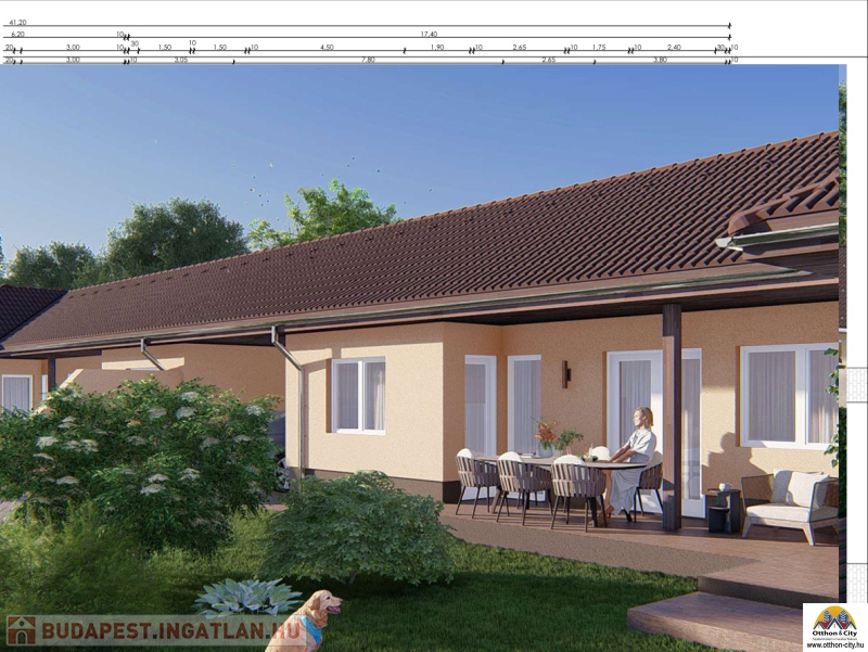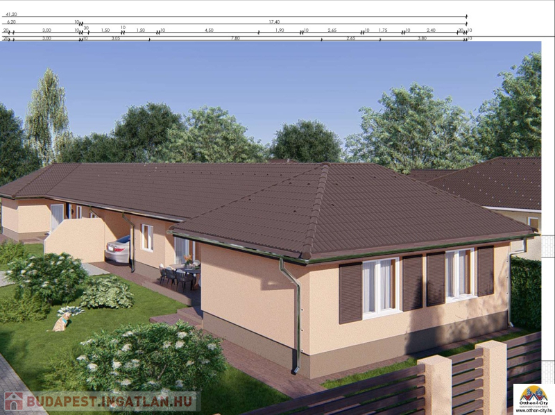 Az ingatlanok között fedett autóbeálló épül, így nincs közös fal, garantálva a teljes privát szférát és zajmentes életteret.