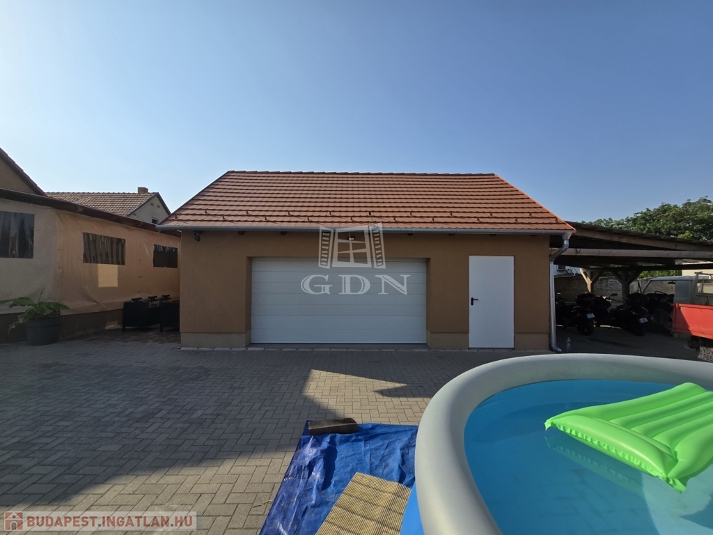 50 m²-es garázs elektromos kapuval és szerelőaknával, melynek tetőtere tárolásra vagy akár beépítésre is alkalmas,
