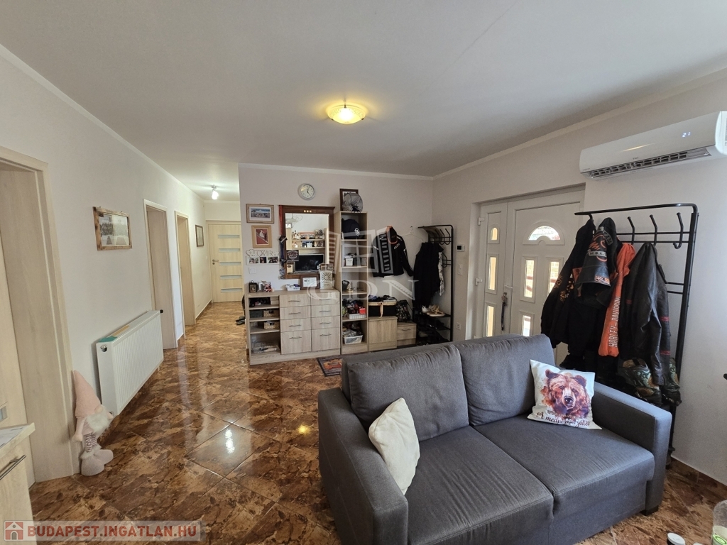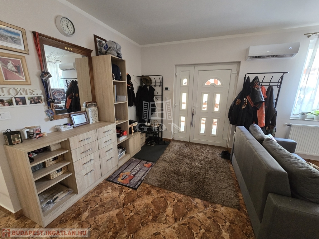 Az új építésű, kétszintes családi ház 2018-ban került újjáépítésre, korszerű blokk téglás szerkezettel, Leier és Porotherm téglákból. Az ingatlan több mint 110 m²-es, teljesen kiépített alsó szinttel rendelkezik, amely azonnal költözhető, míg a több mint 40 m²-es tetőtér beépíthető, így kiváló lehetőséget kínál egy különálló lakrész kialakítására – akár kétgenerációs otthonná is alakítható.
