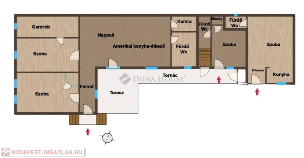 Amerikai konyha+nappali, 2 szoba, gardrób, fürdő, kamra