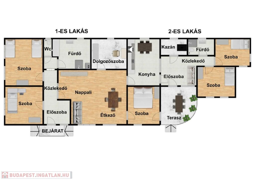 Hatalmas, 1308nm-es telek jár hozzá melyre melléképületként akár egy különálló családi ház is építtethető.
