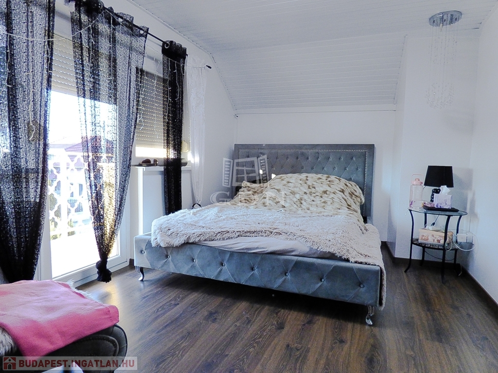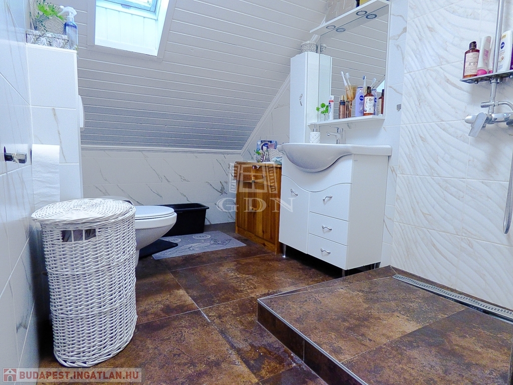 Vecsés Felsőhalom részén, csendes mellékutcában, 1998-ban épült, 370 nm-es önálló telken lévő, bruttó 227 nm-es (70 NM-ES PINCE + GARÁZS + 14 nm IRODAHELYISÉG) , 3 szintes, vasbeton födémes, szigetelt (10 cm dryvit), 4 szobás, felújított állapotú, gáz cirkó (kondenzációs, Bosch), - cserépkályha fűtéses, hűtő fűtő klímával, riasztóval felszerelt, thermo nyílászárós (redőnnyel), Dél - Keleti fekvésű, tehermentes családi ház eladó.