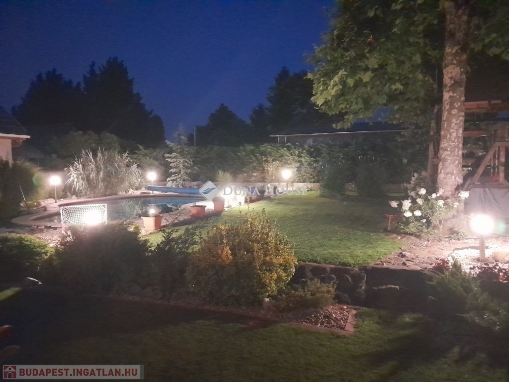 Medencéről tudnivalók : 12mtr x 6mtr-es vese alakú, amelynek tisztántartásáról medenceporszívó robot gondoskodik. A medence külön téli, és nyári takaróval is rendelkezik. A gépesítés a medence mellett található kis épületben kapott helyet. A kertben alkonykapcsolóval ellátott hangulatos világítás is helyett kapott.