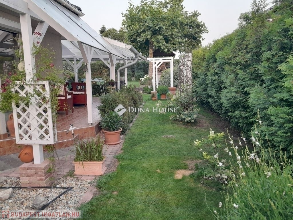 A kert parkosított, és önfenntartó. A kert locsolásáról automata öntözőberendezés gondoskodik a fúrt kútból, és Husqvarna robotfűnyíró tartja rendben a fűves területeket.