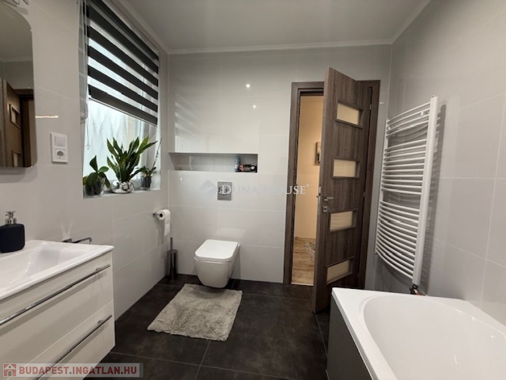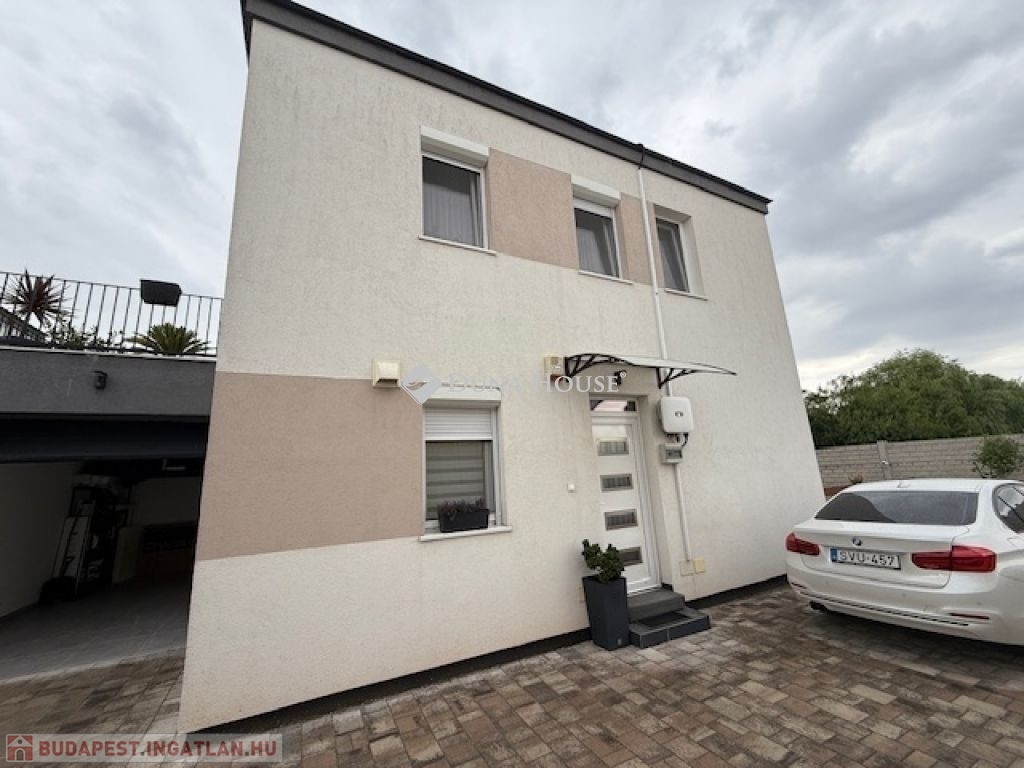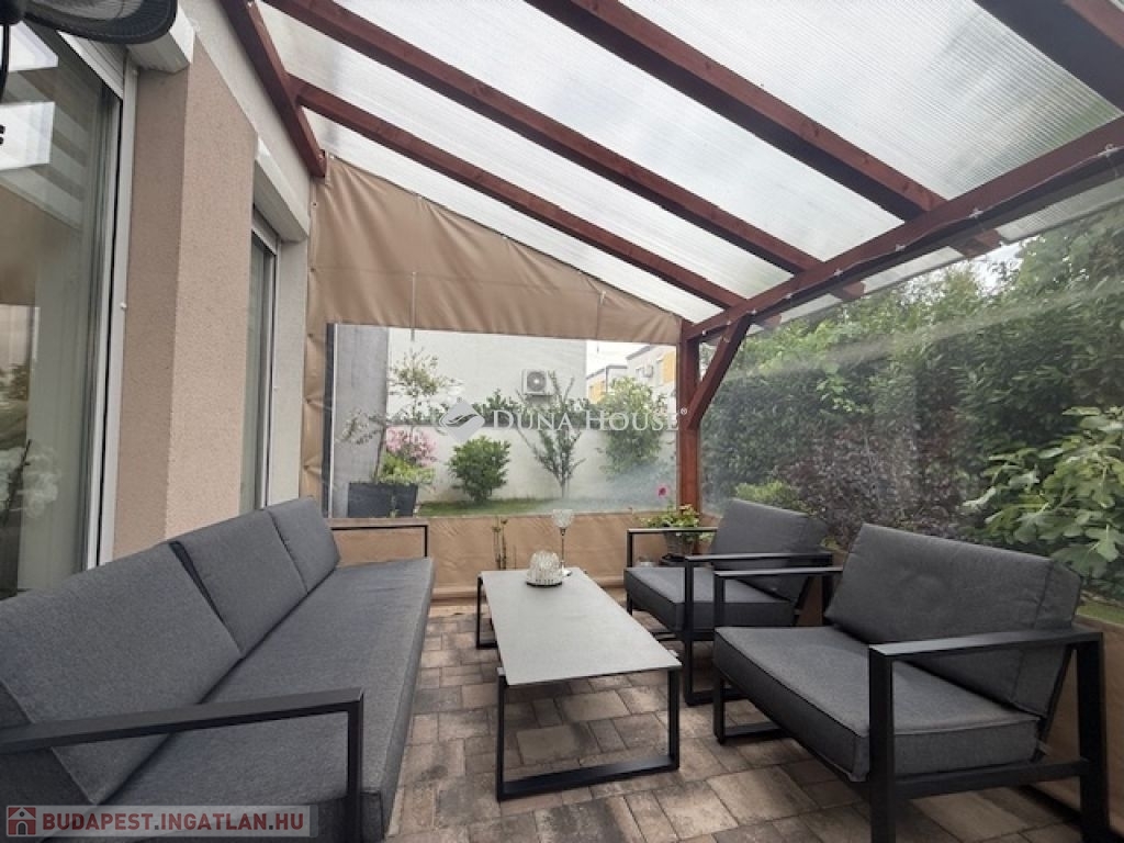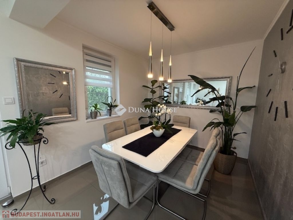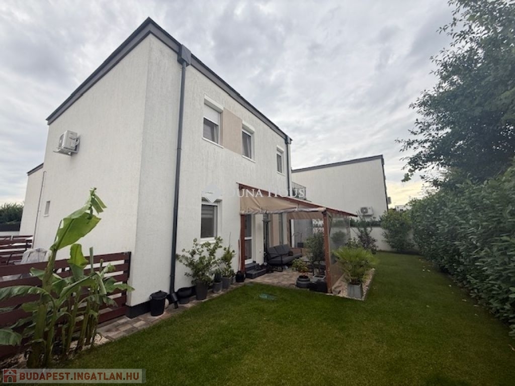 Vecsés egyik közkedvelt zárt lakóparkjában kínálom megvételre ezt a csodaszép ékszerdobozt , melybe valóban csak költözni kell !!!A Market Centrálhoz közel kínálom megvételre ezt a 131 nm alapterülettel rendelkező ingatlant a hozzá tartozó 263 nm kerttel. Az épület 2020-ban épült , Porotherm 30 as K téglából, rajta 10 cm grafit szigetelléssel és fehér nemesvakolat záróréteggel ellátva. Az ingatlan kialakítása a következő: Az ingatlan alap területe 54 nm mely 2 szinten összesen 96 nm lakóteret biztosít.Ezen felül van egy nyitott terasz mely 19,5 nm és egy 15,35 nm alapterületű garázs is mely a lakáshoz tartozik. NINCS KÖZÖS FAL EGYIK INGATLANNAL SEM A LAKÓPARKABAN!!!A telek össz.: alap területe 263 nm melyből ha kivesszük a lakó épületet, a fent maradó 180 nm saját kertként funkcionál. A képeken jól kivehető, hogy körbejárható az ingatlan , melynek a kert része gyönyörűen füvesített. A kertben található egy kisebb terasz mely télen is kifogástalanul használható , mert ponyvával téliesítette a tulajdonos. Az ingatlan korszerű , minden a mostani építési szabályzatnak megfelelően épült fel, mindez gyönyörű kivitelezésben. A lakásban kivétel nélkül minőségi és Prémium anyagok kerültek beszerelésre. Ez magába foglalja a burkolatokat , szanitereket, beltéri ajtókat és mindent ami kielégítheti az igényesség fogalmát !A nyílászárók részben elektromos, részben mechanikus redőnnyel + szúnyoghálóval felszereltek! Az ingatlanban található az alsó szinten -Amerikai konyhás nappali-Étkező-Előtér-Fürdőszoba épített zuhannyal -LépcsőtérEmeleten -3 db szoba -fürdőszoba káddal ellátva -Közlekedő -Hatalmas nyitott terasz Ezen felül az épület bal oldalában egy elektromos kapunyitással rendelkező zárt garázs !A lakás fűtéséről és melegvíz ellátásáról , gáz cirkó gondoskodik padlón keresztül történő hőleadással. A fürdőszobákban + törölköző szárítók lettek felszerelve. A kertben automata öntöző rendszer van. Az ingatlan a képeken látható berendezett állapotban kerül értékesítésre , így ide valóban csak a bőröndöt kell behúzni a vásárlás után :)Amennyiben hirdetésem felkeltette érdeklődését , keressen bizalommal és nézzük meg együtt ezt a remek ingatlant !