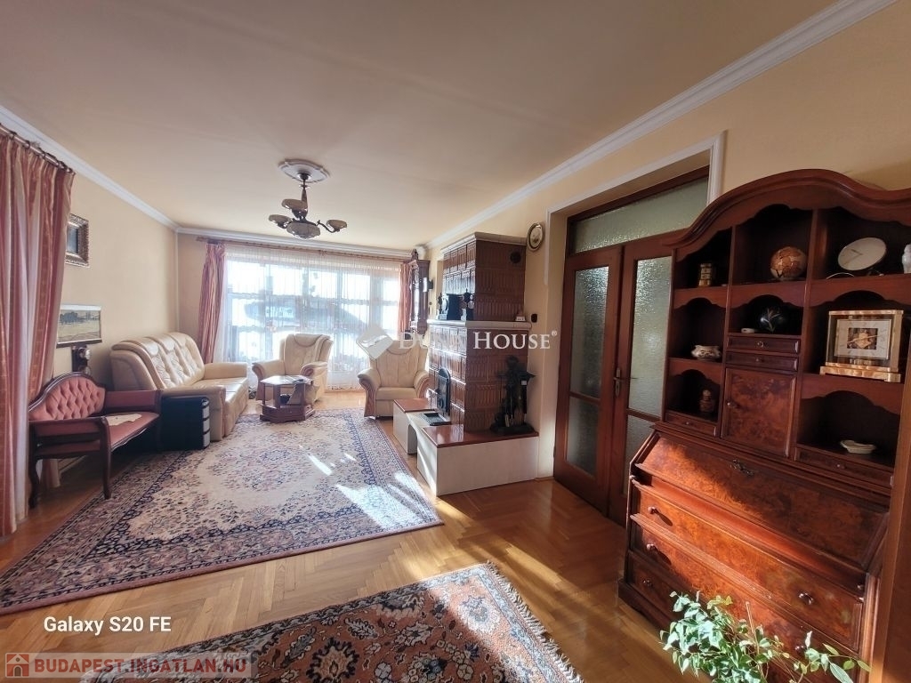 A nappali ékköve egy klasszikus vonalvezetésű, stílusos cserépkályha, mely nemcsak a téli esték hangulatát emeli új szintre, hanem valódi dekorációs központi elem is az enteriőr fókuszpontja. Az étkező fölötti 4,5 méteres belmagasság drámai tágasságérzetet ad, amit a nagyméretű, hő- és hangszigetelt nyílászárók tesznek még látványosabbá: a természetes fény szinte festményként rajzolja át a padlót egész nap.