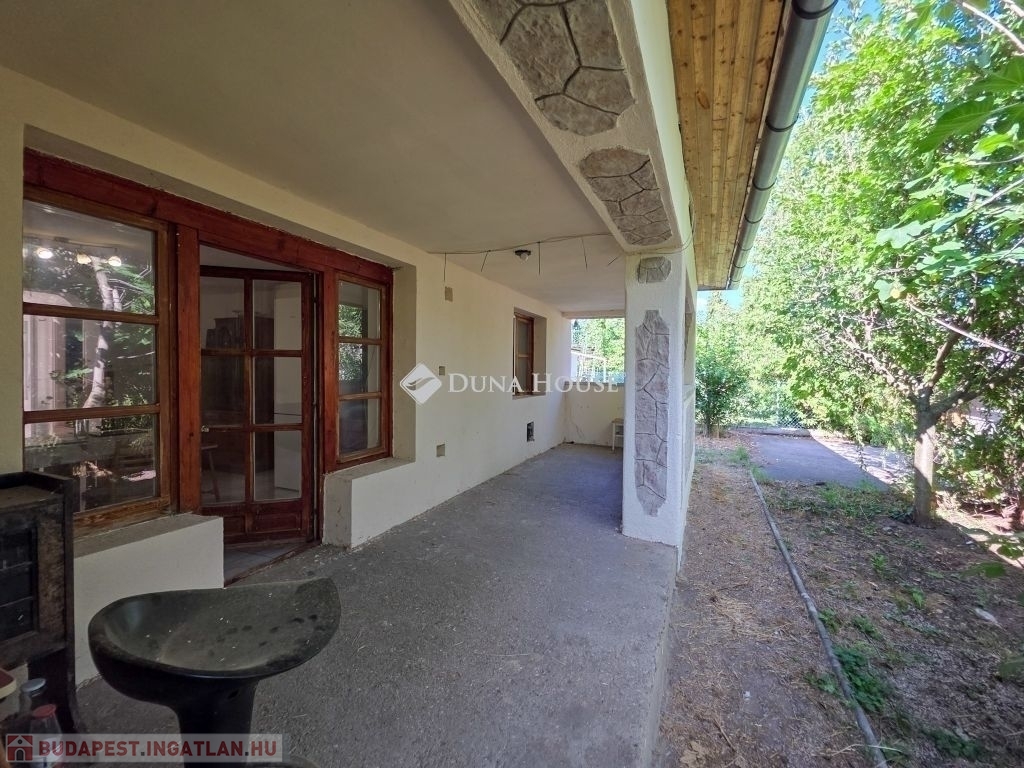A 601 m²-es telken fekvő házhoz saját, zöld kert, fedett terasz és pince is tartozik.