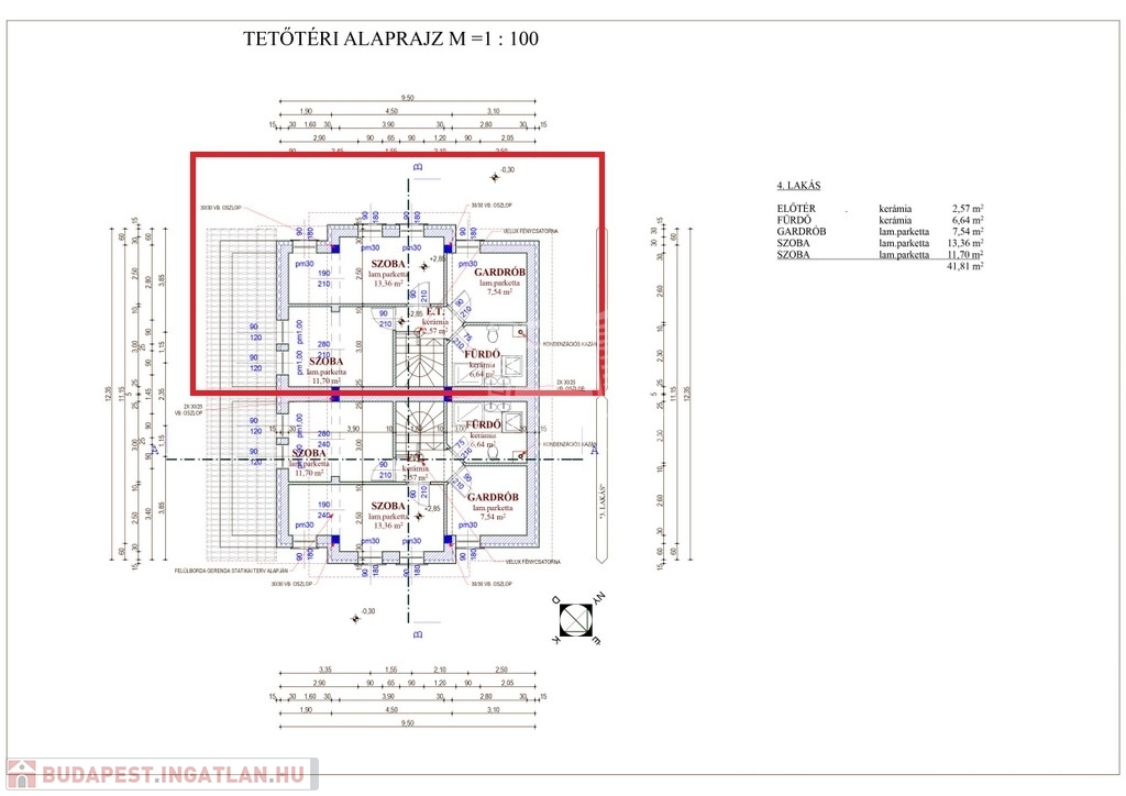 A lakás 96 nm lakóterülettel rendelkezik, a földszint nappali, étkező, konyha, hálószoba, fürdőszoba, külön wc, közlekedő, az emelet két szoba, egy félszoba, fürdőszoba wc-vel, közlekedő elrendezésű.