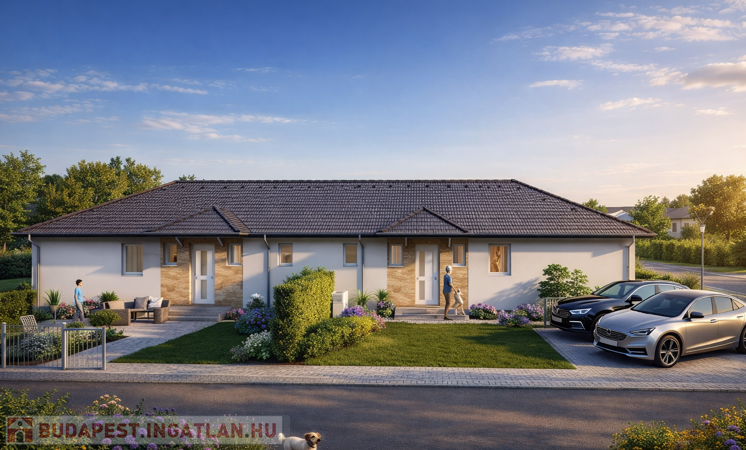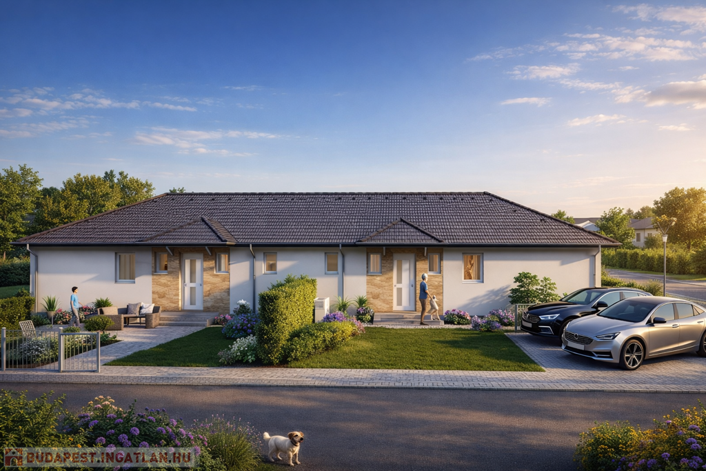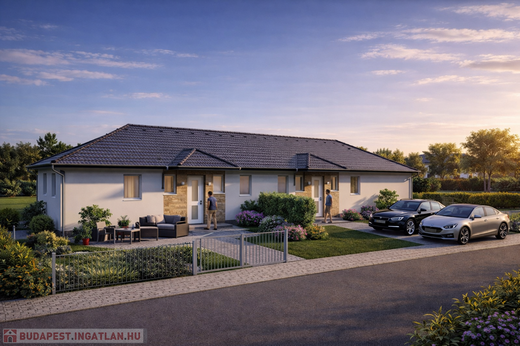 Az ingatlan - ikerházi kialakítása ellenére - saját, körbekerített kertrésszel, külön bejárattal és önálló kocsibejáróval rendelkezik, így a mindennapokban valódi privát életteret biztosít. 80 m²-es lakóterében praktikus elrendezésű három szoba és egy tágas nappali ad kényelmes életteret akár nagyobb család számára is. Az 500 m²-es telek kellemes méretű kertet kínál, a térkövezett kocsibeálló a mindennapi használatot teszi egyszerűvé és kényelmessé.