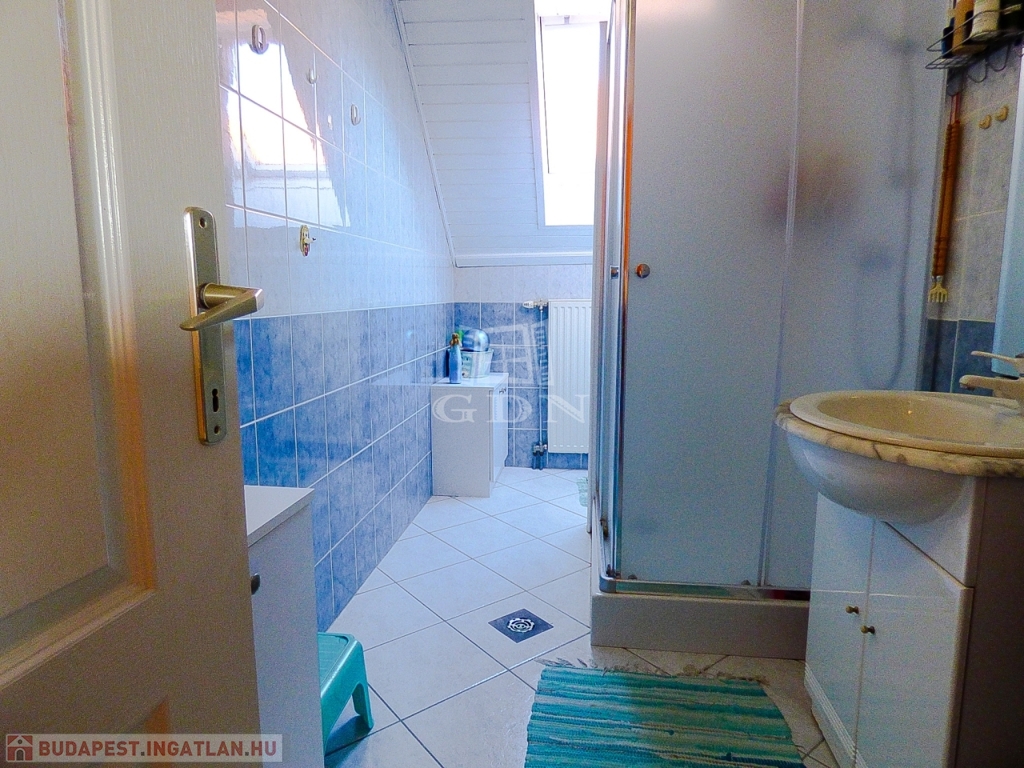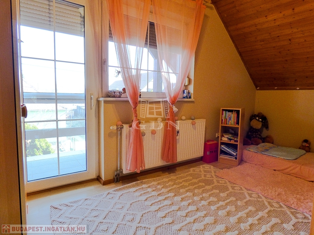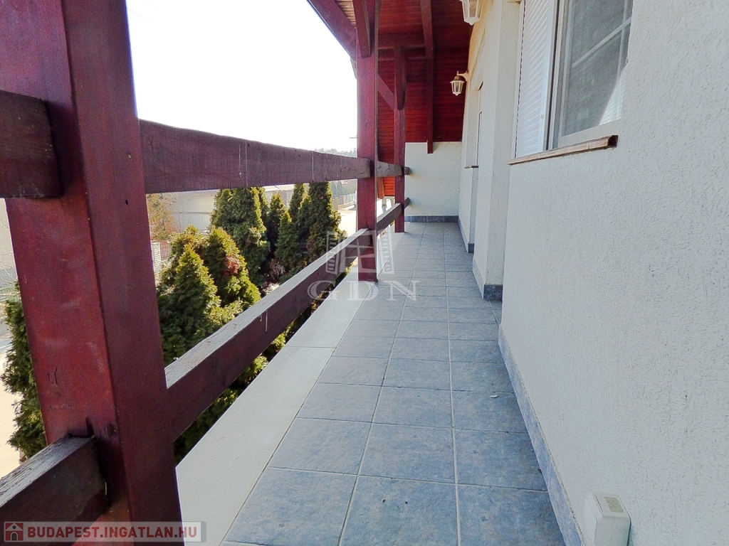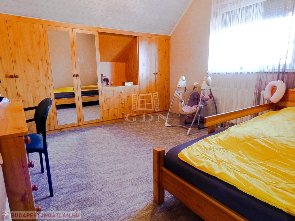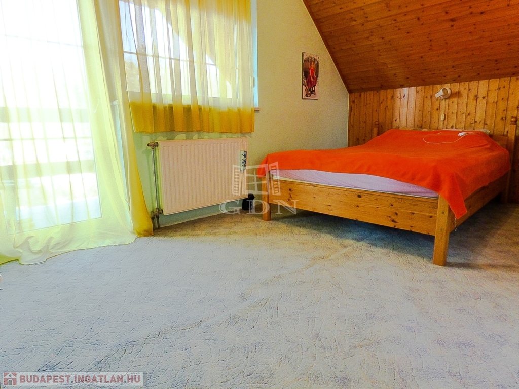 Veresegyház csendes mellékutcájában, a tavak közelében, 856 nm-es telken lévő, 1996-ban saját részre épült, 180 nm-es, két szintes, 5 szobás, vasbeton födémes, jó állapotú, gáz cirkó (hideg burkolatok alatt padlófűtéssel a földszinten), - fa tüzelésű kandalló - és hűtő-fűtő klíma fűtéses, dupla komfortos, Keleti fekvésű, riasztóval felszerelt, nagy erkélyes (2*9,5 nm) - és teraszos (35 nm), medencés családi ház eladó.
