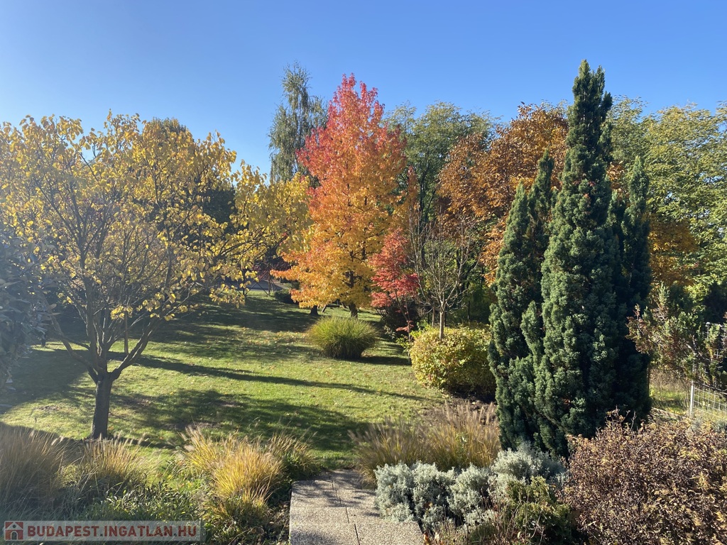 Telek leírása: a környék egyik legnagyobb és egyik legszebb kertje 1295 nm-en, melyen található egy szerszámtároló faház, rengeteg díszfa, gyümölcsfa, zöldellő bokor, sövény, virág, viacolorral burkolt több gépkocsi számára beálló, 2 kocsi részére fedett beálló. Fúrt kútból, 11 körös automata öntözőrendszer végzi a locsolást.