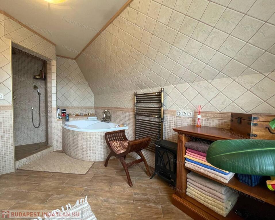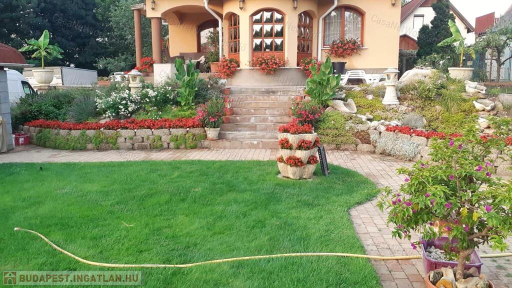 Egyéb jellemzői: esztétikus burkolatok, cseresznyefából készült konyhabútor, csodás kert.