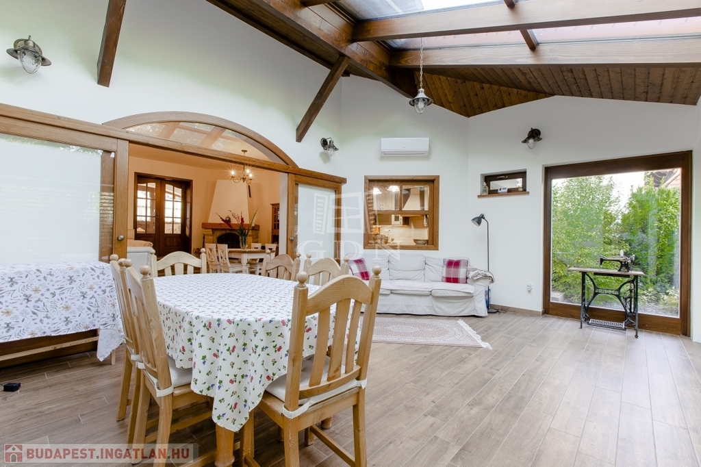 - Tágas télikert elektromos zsaluziával és árnyékolással – egész évben élvezhető élettér.