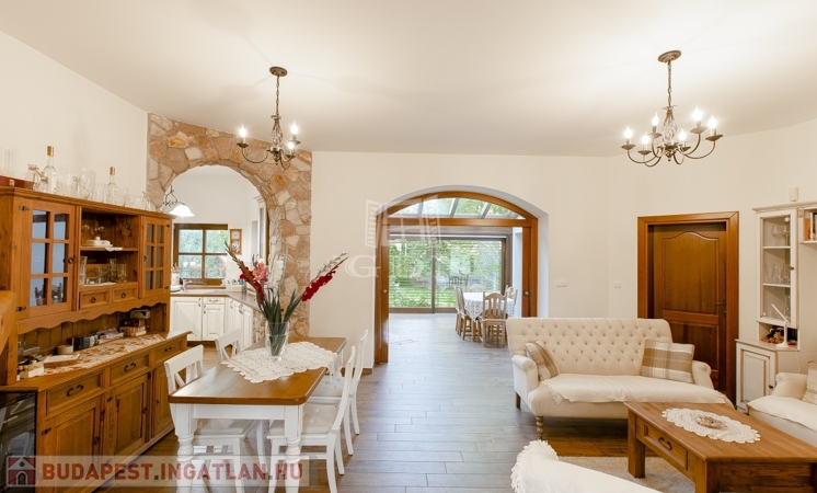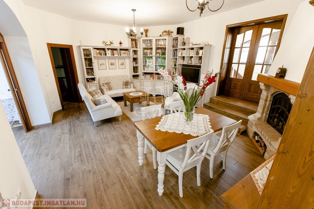 - Kandalló a nappali központjában, amely otthonos, elegáns hangulatot teremt.
