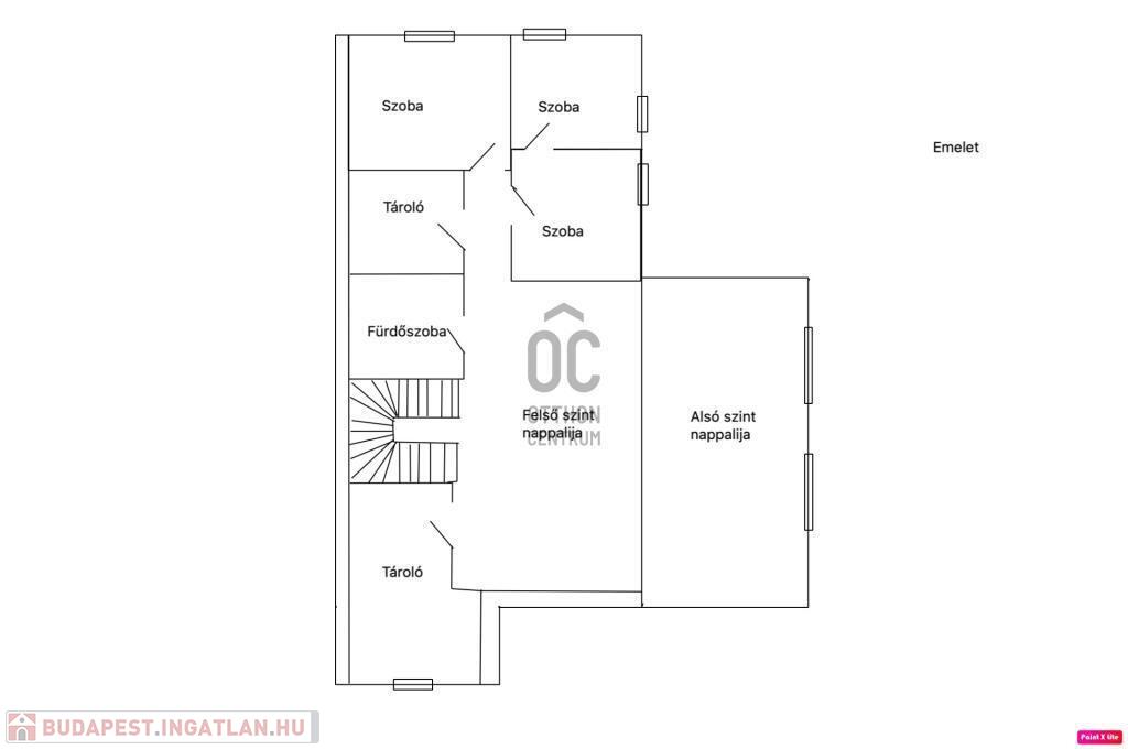 Emelet: több hálószoba és egy galériás tér – dolgozószobának, játszószobának vagy második nappalinak is ideális