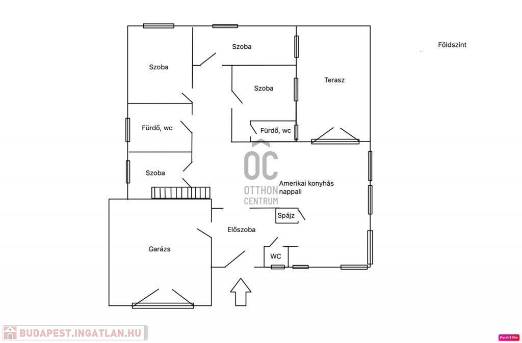 Földszint: amerikai konyhás nappali, étkező, szülői háló privát fürdőszobával