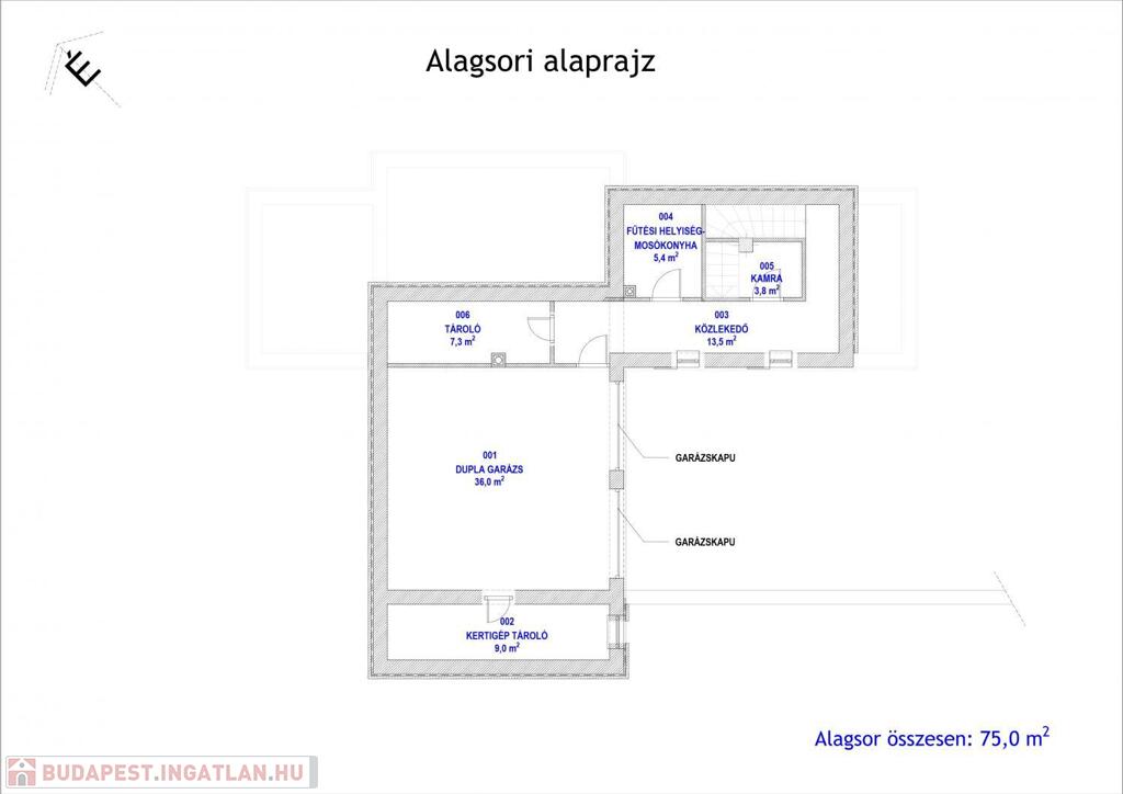 Alagsor: duplagarázs, tárolók, kamra, mosókonyha, kazánhelyiség.