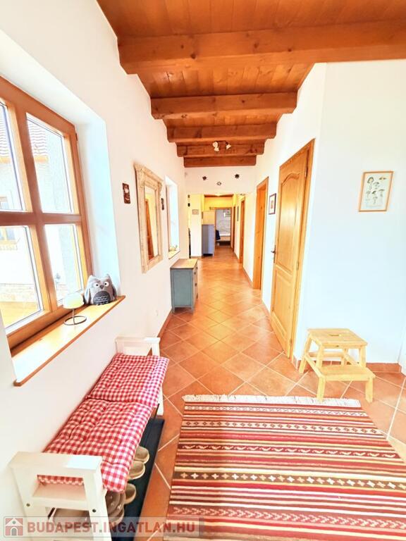 A ház belső tere egységesen tovább viszi a külső tradicionális karaktert, minden helyiségben látszó fafödémmel, természetes, meleg hatású fa felületekkel,így a modern kényelem és a hagyományos forma itt valódi értéket képvisel