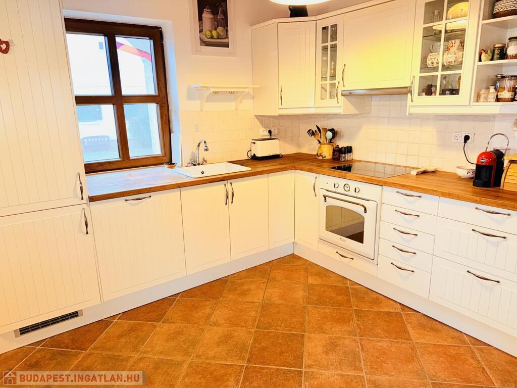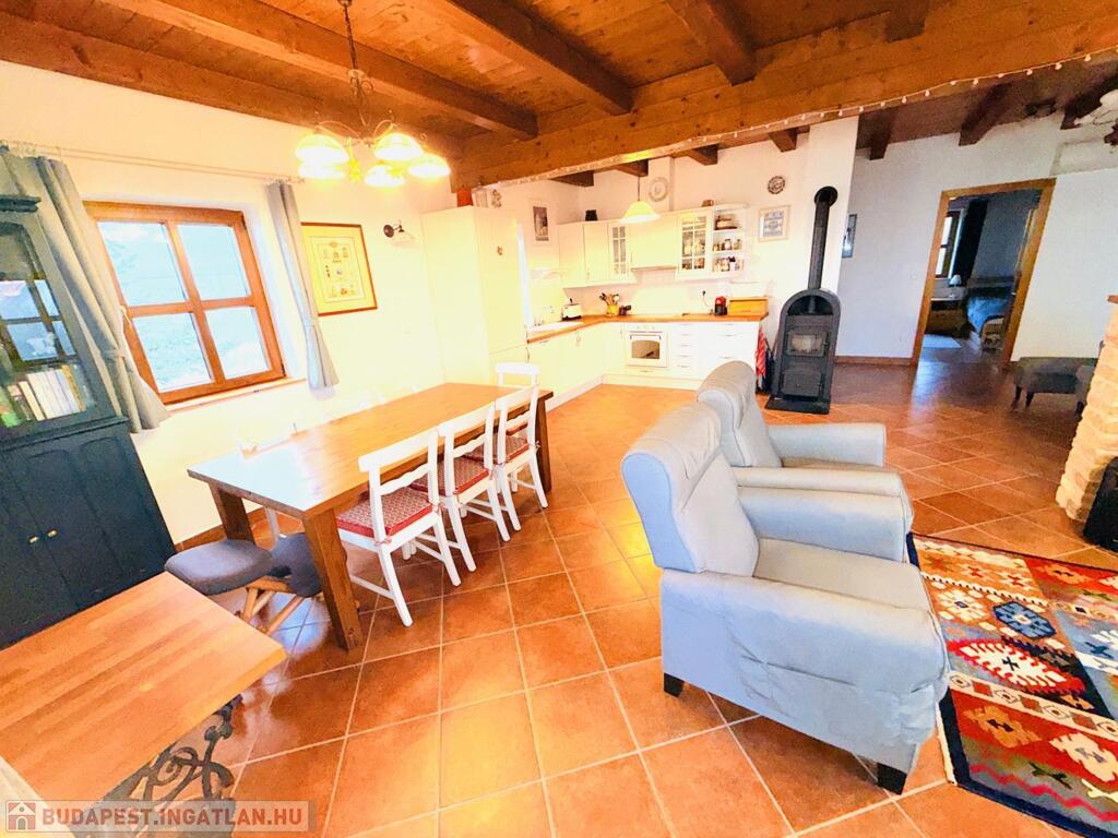 Fűtés: Junkers kondenzációs kazán új melegvíz-tárolóval, padlófűtés a lakótérben, radiátorok a hálókban, (telefonról vezérelhető)öntöttvas kandalló,